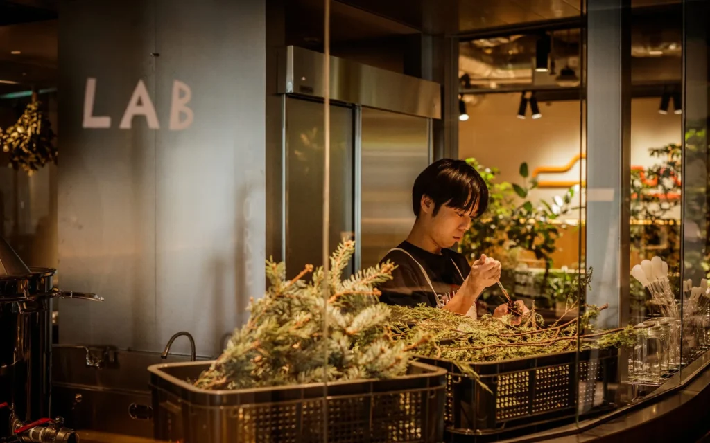 サウナで使うエッセンシャルオイルは、館内のアロマラボでハーブなどの植物から抽出して作られているそう。