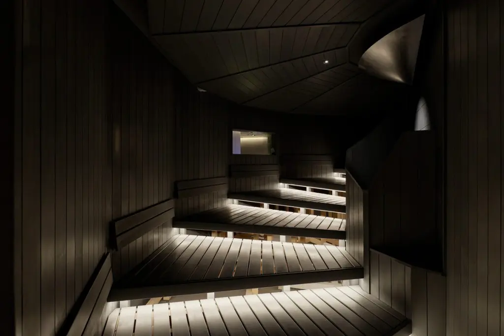 螺旋状になったユニークなサウナ室。